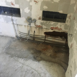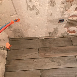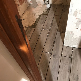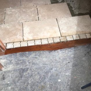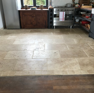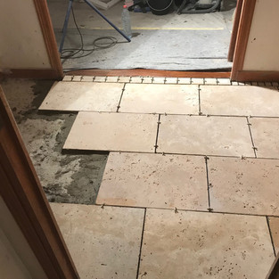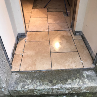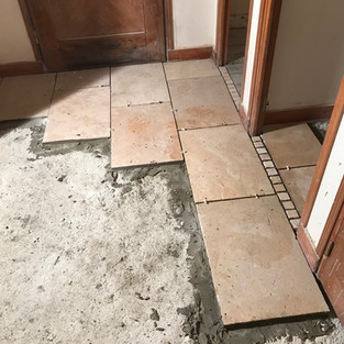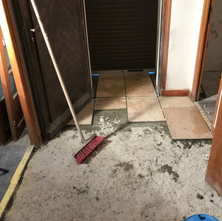 All through the house there were tiles, walls, floors, everywhere.. Part I was to dig them all up and then remove the screed to get to a level low enough for the new tiles... Timber-like tiles for the bath room and WCs and larger, flagstone tiles for the hallway, office and kitchen.. Massive job, especially as there was no heating in the house, it was pretty brutal.. but the result is great!