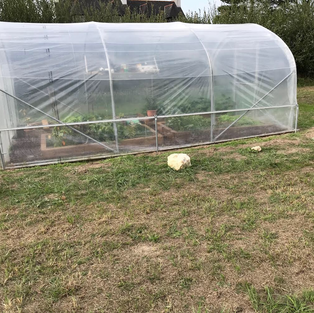 It can get a bit damp in the field so beds had to come out again, and eggy pipe dug in, weed blocking membrane, and gravel added, and beds are back in, with some help from an old friend..